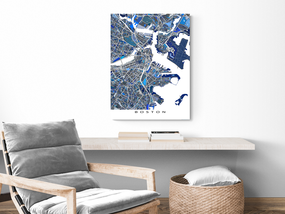 Boston Map Print, Blue Geometric Massachusetts City Street Wall