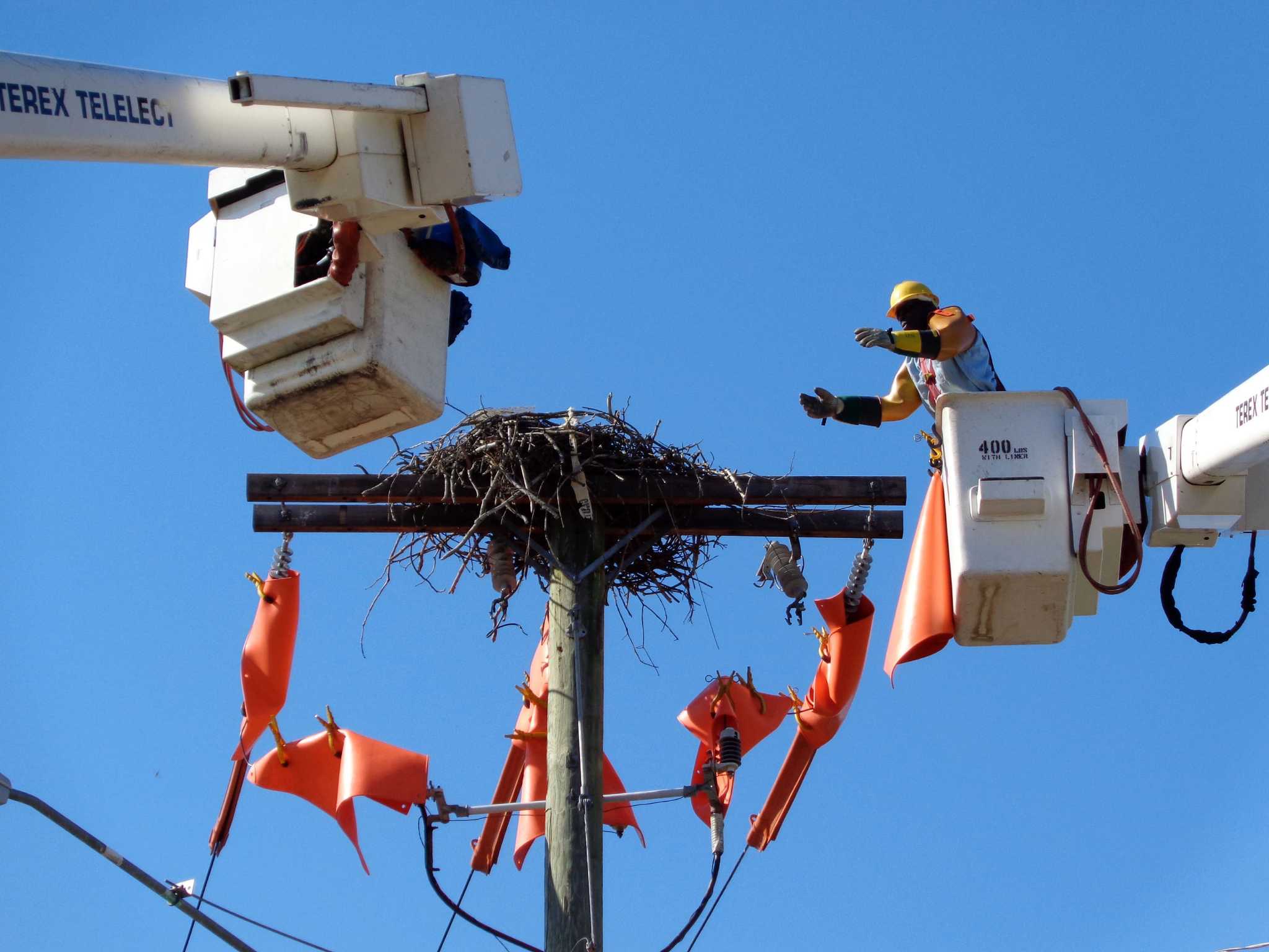 High (and live!) wire act: CL&P crews move Westport osprey nest