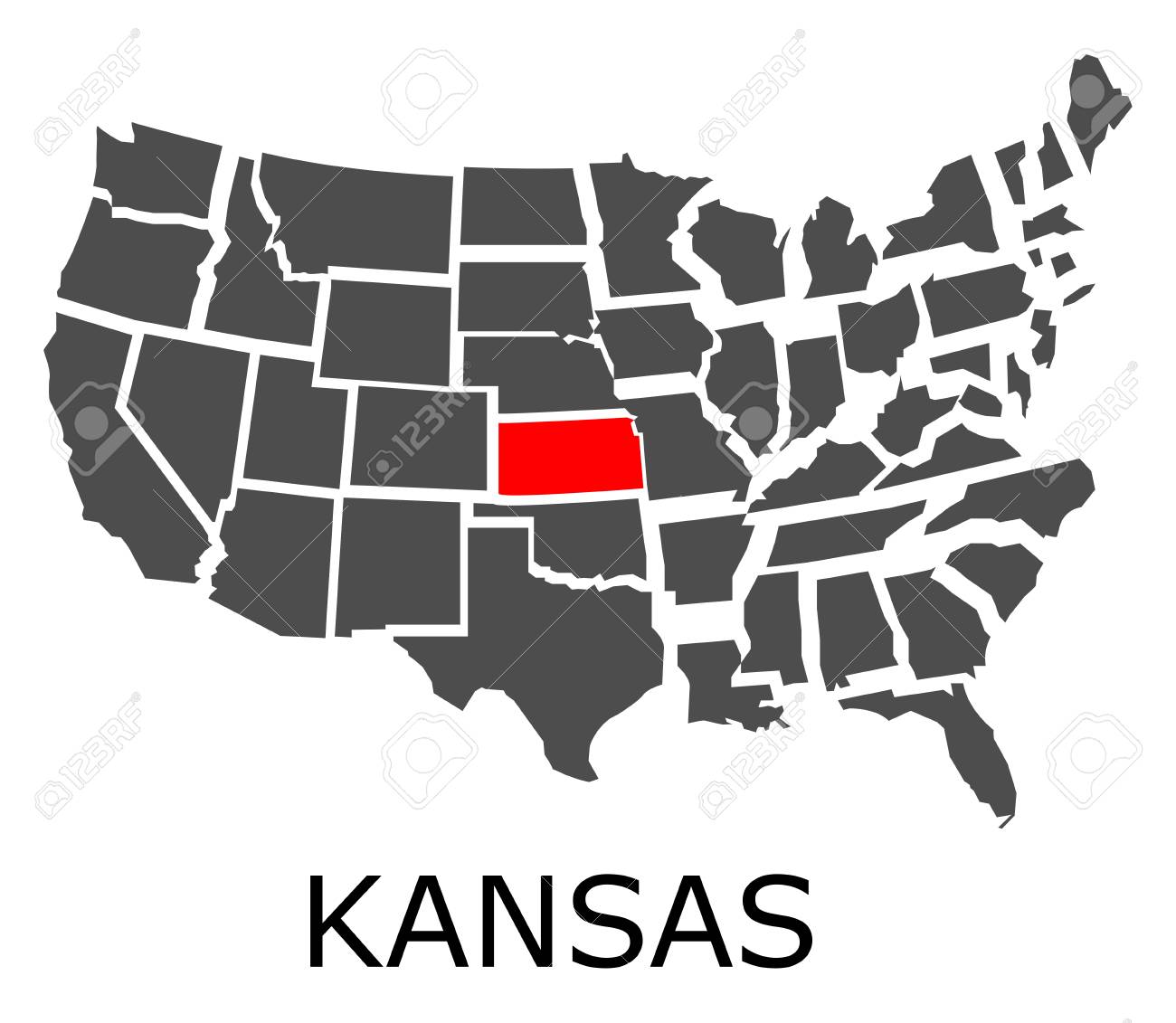 Bordering Map Of USA With State Of Kansas Marked With Red Color