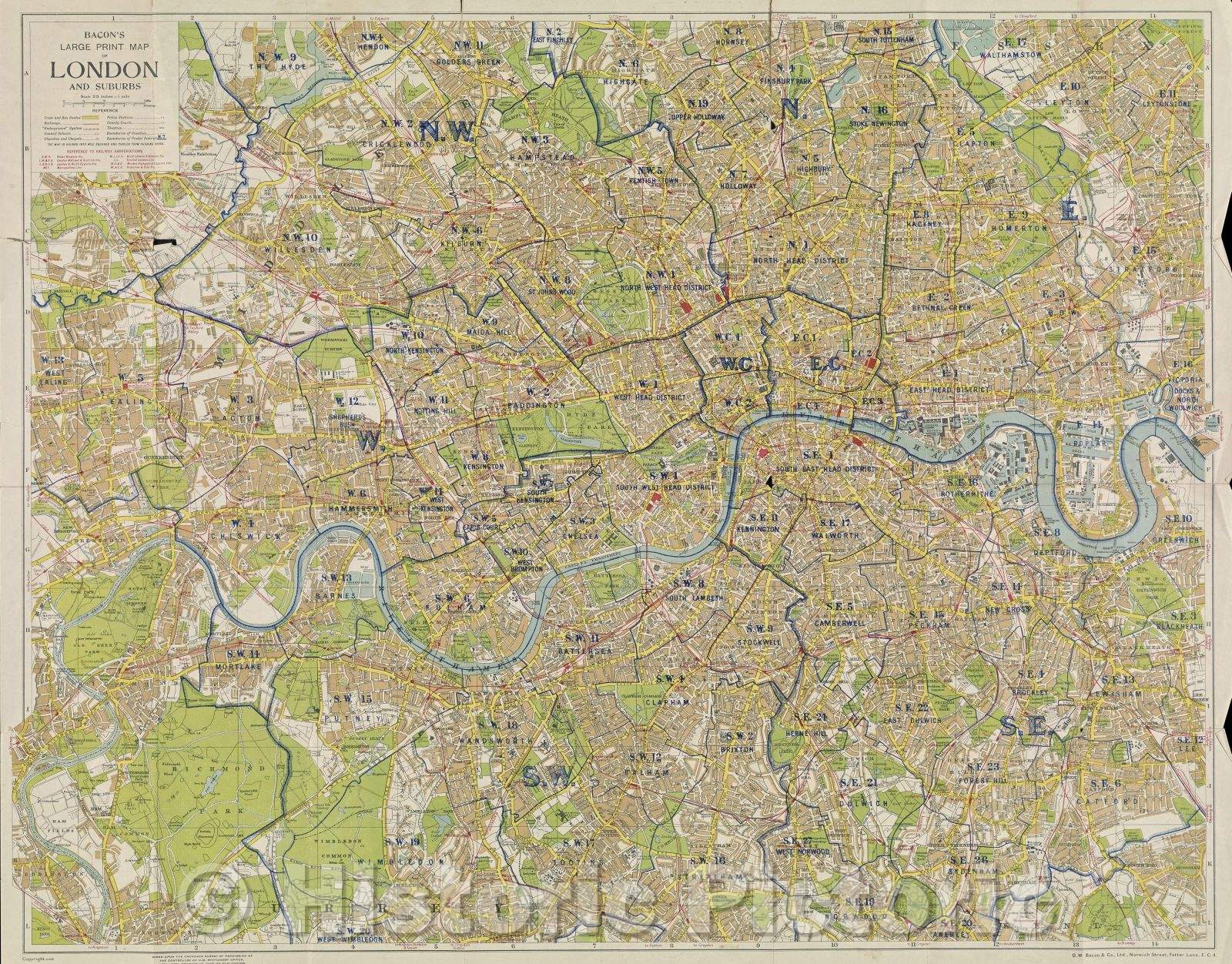 Historic Map : Bacon’s New Large Print Map of London and Suburbs