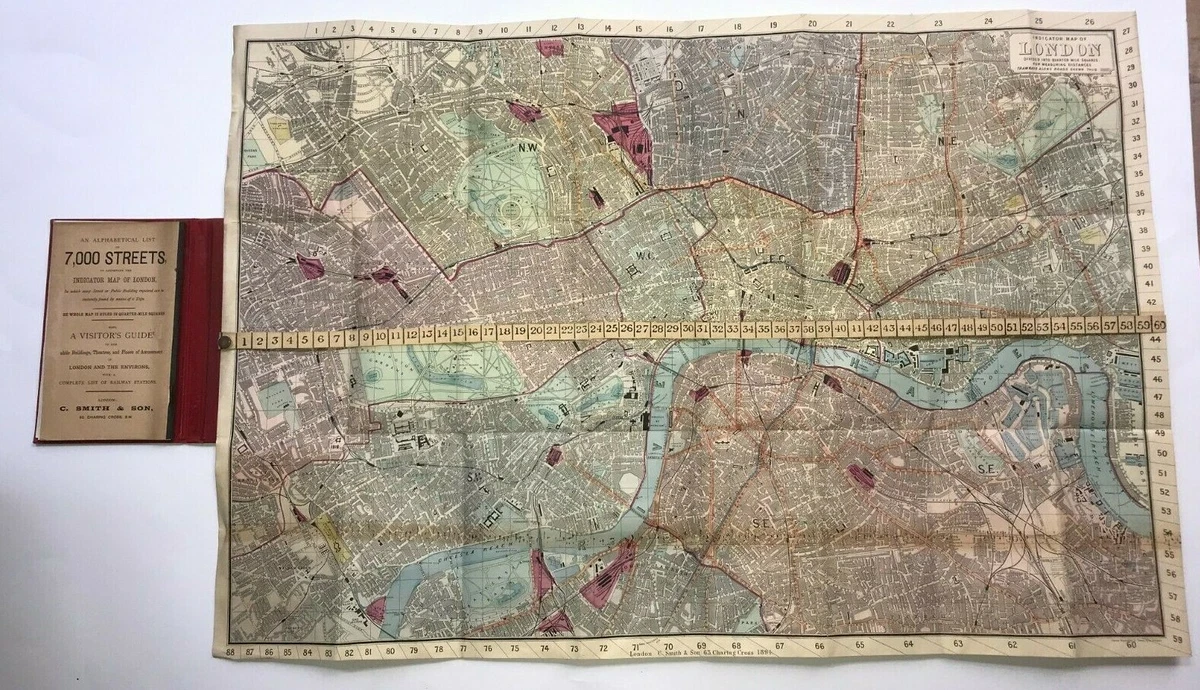 LONDON LARGE WALL MAP 1894 SMITH & SON 19TH CENTURY ON LINEN IN