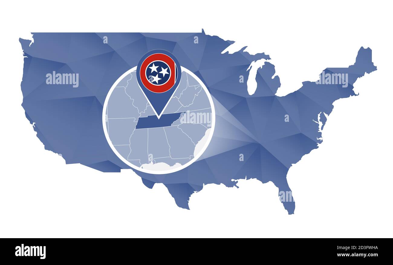 Tennessee State on USA Map. Tennessee flag and map. US States